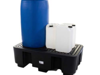Bac rétention 2 fûts plastique noir avec caillebotis.