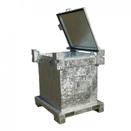 - Container Acier GRV pour ordures solides matières dangereuses 1500 Litres en acier galvanisé. Extrêmement robuste. Porte de fermeture à joints.