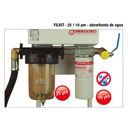 - Filtration Mobile double, Très polyvalente pour citerne. Filtration en ligne séparée de 25 et 10 microns (Absorbeur d eau) pour FUEL, BIO carburant. Trolley métallique rigide a roues. Pompe auto amorcante 50 L/min 230V équipée Permet de Filtrer le carburant contenu dans une citerne efficacement et économiquement