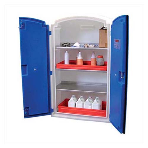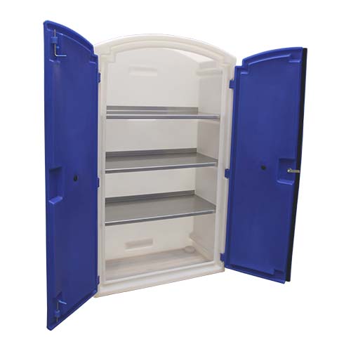 - Armoire de Sécurité phytosanitaire ( Petite rétention ) plastique avec étagères en acier inox, portes en plastique verrouillables.